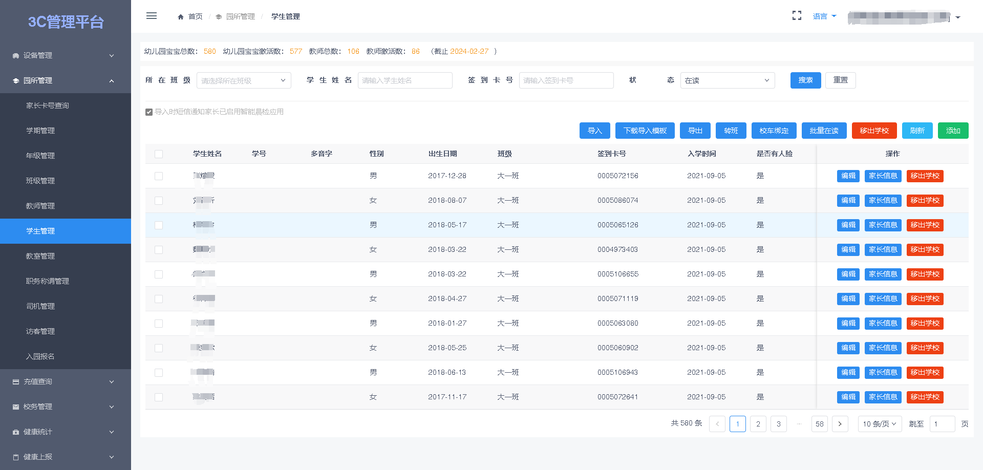 以市为单位,政府相关职能机构可以接入平台系统,对辖区内的幼儿和教育机构进行管理;平台提供宝宝日、月、年的健康成长监测报表,并提供预警提醒功能;集团幼儿园总部可通过平台系统查看旗下所有幼儿园孩子的健康检测记录,为孩子在园健康成长护航。